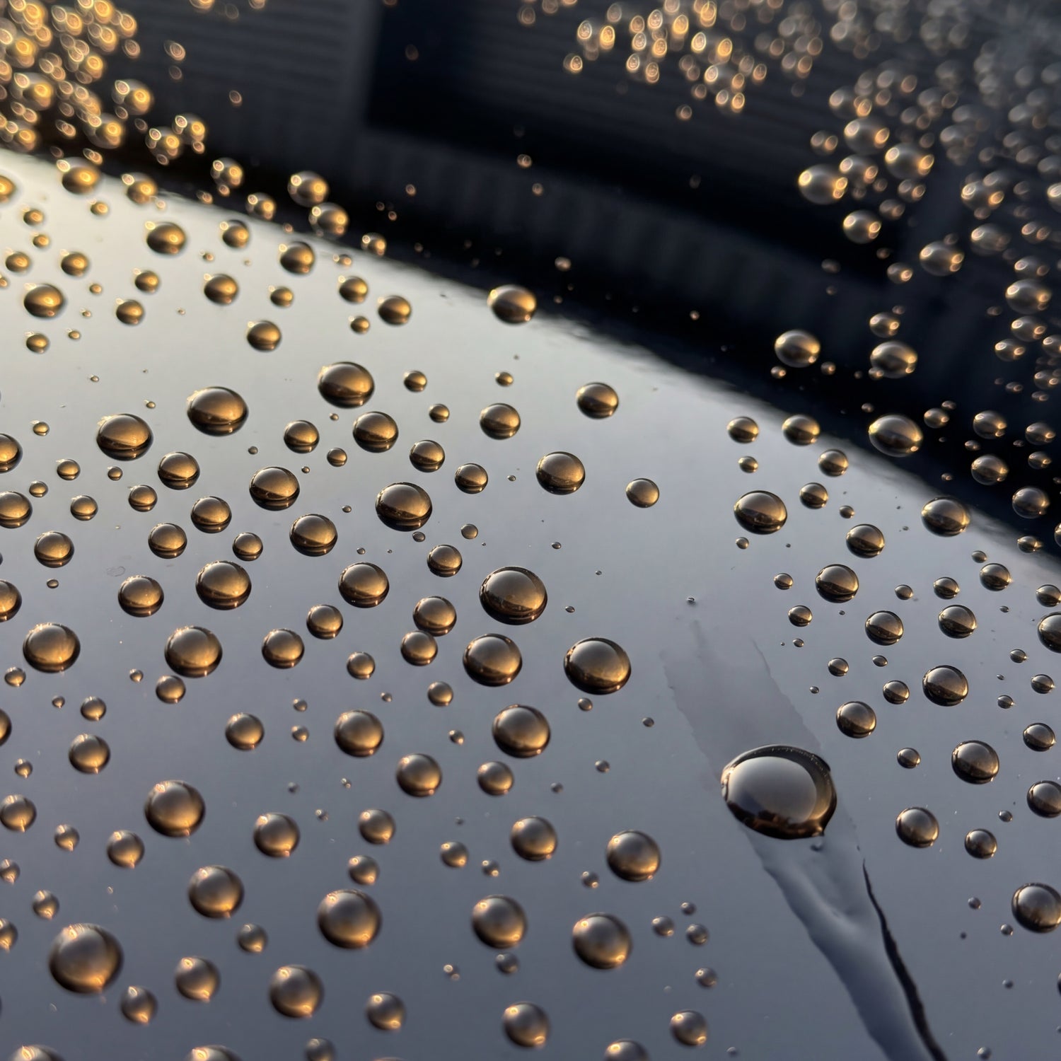 - Contact angle over 80° after each application. The SiO² content builds a thin silicate layer on the film after two to three sprays. Water beads like on fresh PPF, dust and road dirt adhere less, and self-cleaning returns. The effect is visually immediately recognizable by the droplet shape upon the next contact with water.