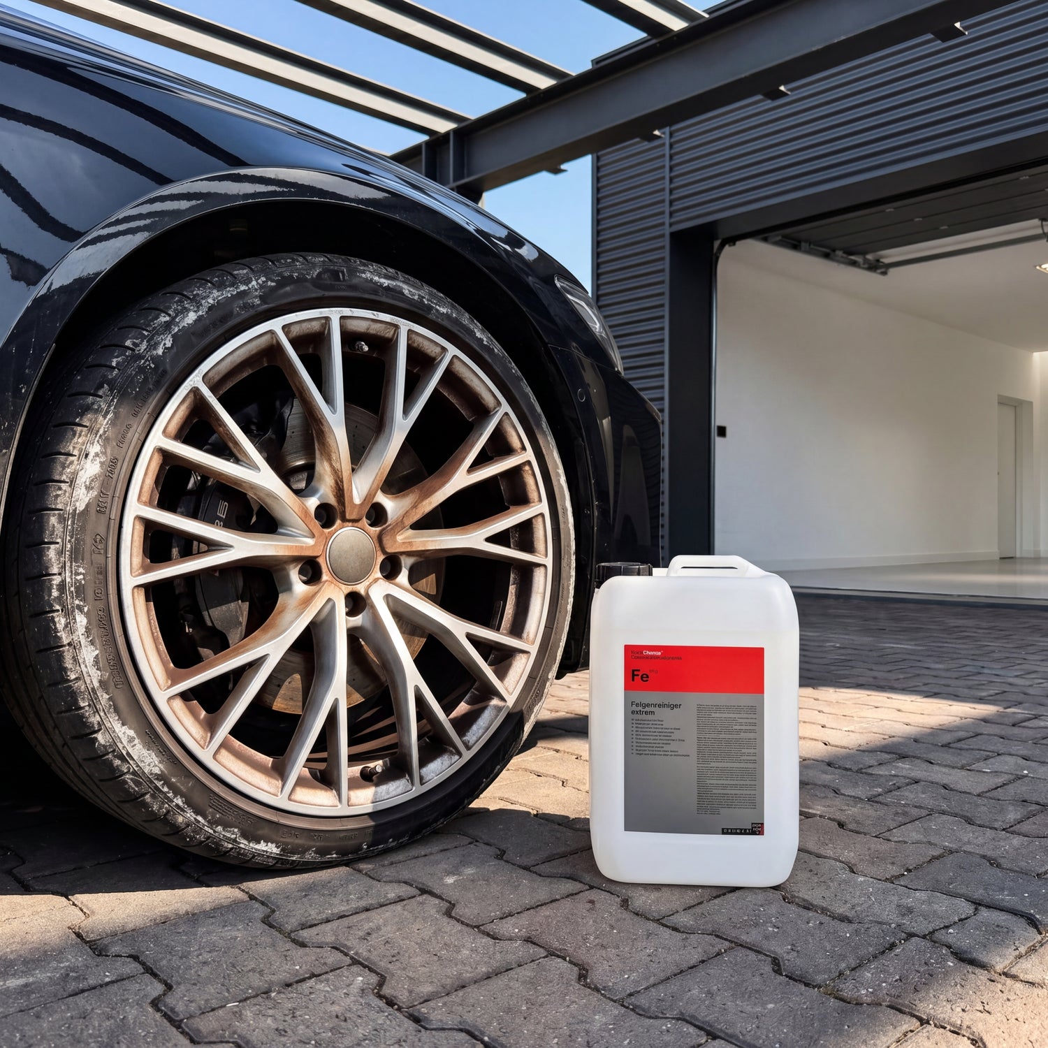 The Fe is not an end-customer product. It belongs in the workshop, in the detailing bay, and in the car wash tunnel. If someone uses it privately in their home garage, they are buying 11 kg of concentrate for a task that an acid-free cleaner in a 1-liter format can solve just as well — with significantly less risk to the rim and their own health.