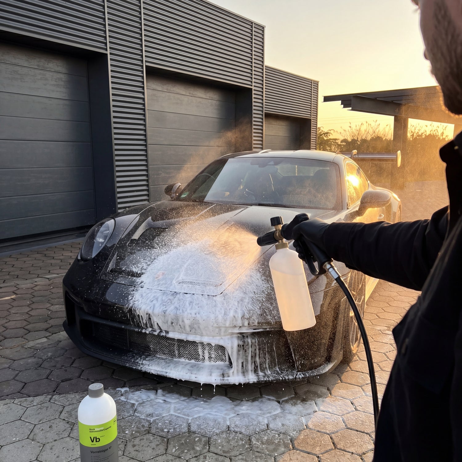 Third: It is not paint-surface friendly in the sense of hand wash chemicals. If you maintain your new car with the two-bucket method and mild car shampoo, you don't need Vorreiniger B in the garage. Its area of application begins where hand washing is no longer sufficient — with heavily soiled vehicles, commercial fleets, utility vehicles, and construction machinery.