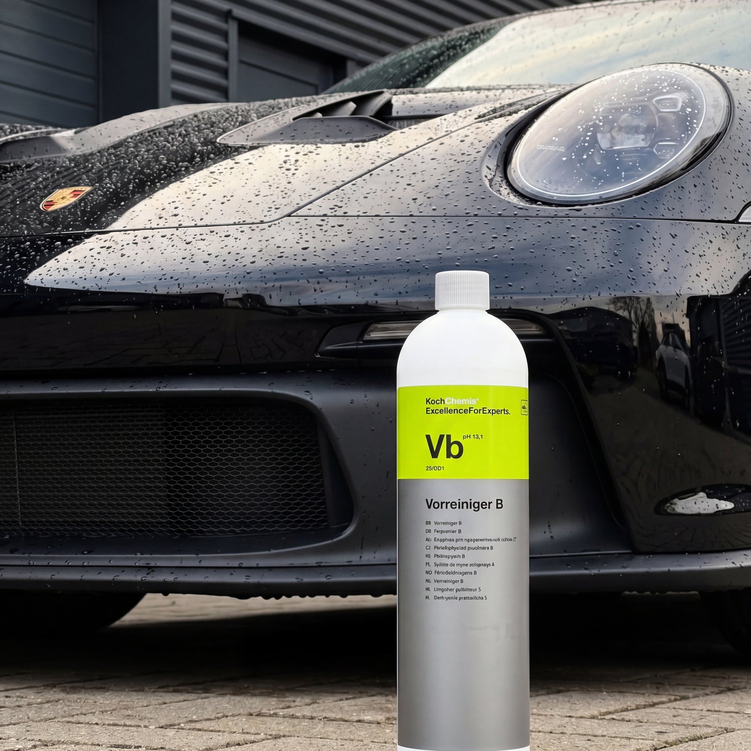 Koch Chemie Vorreiniger B is not a mild foam pre-cleaner for coating-protected vehicles. pH 13.1 is workshop level — strong, uncompromising, but sensitive in application.