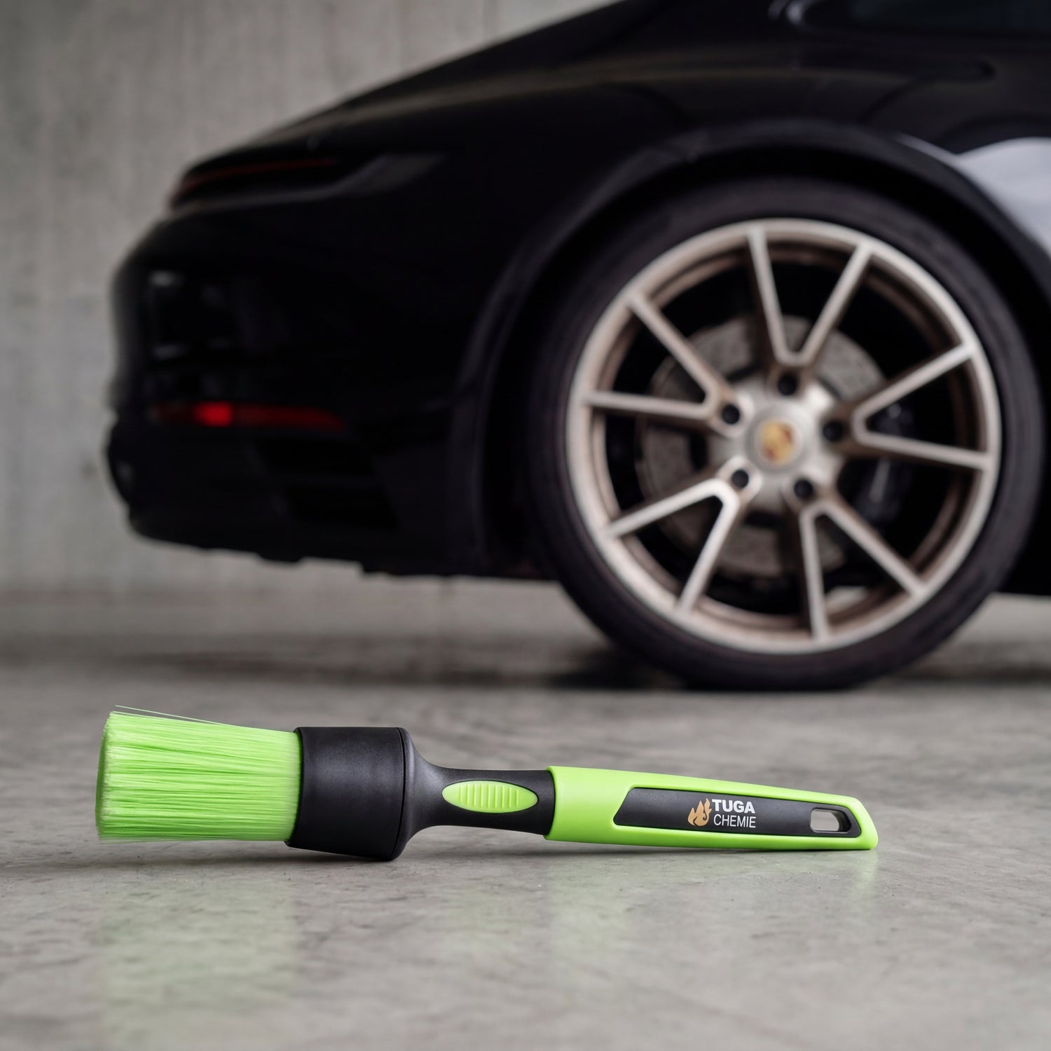 The TUGA Detailing Wheel Brush is the right choice for anyone who wants to not only superficially wash their wheels but also tackle hard-to-reach areas — spoke gaps, lug nut areas, emblem recesses, valve caps. A typical use case is the weekly or monthly thorough wash in your driveway, as the second step after the wheel cleaner has dwelled and before the final rinse. For a quick wash on Sunday, a wheel brush alone is usually sufficient. For a detailed wash or before an event, the extra pass with the detailing brush is noticeably worthwhile.