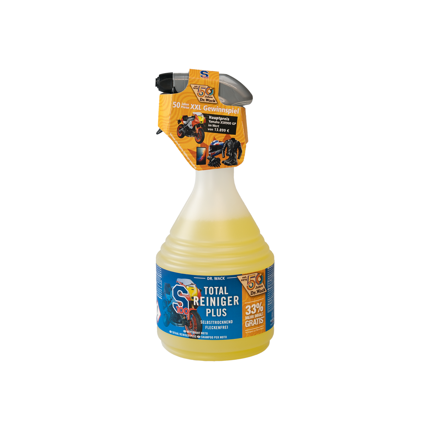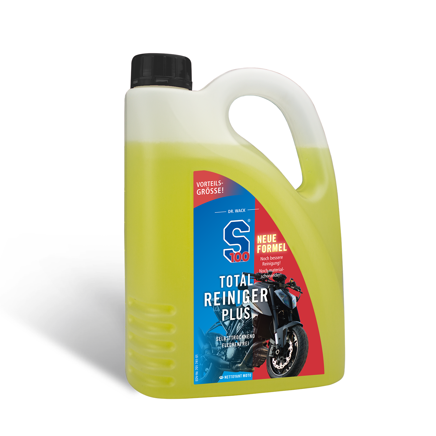 Der Motorrad-Reiniger mit Selbsttrocknungseffekt ist der Dr. Wack "S100" Total Reiniger Plus