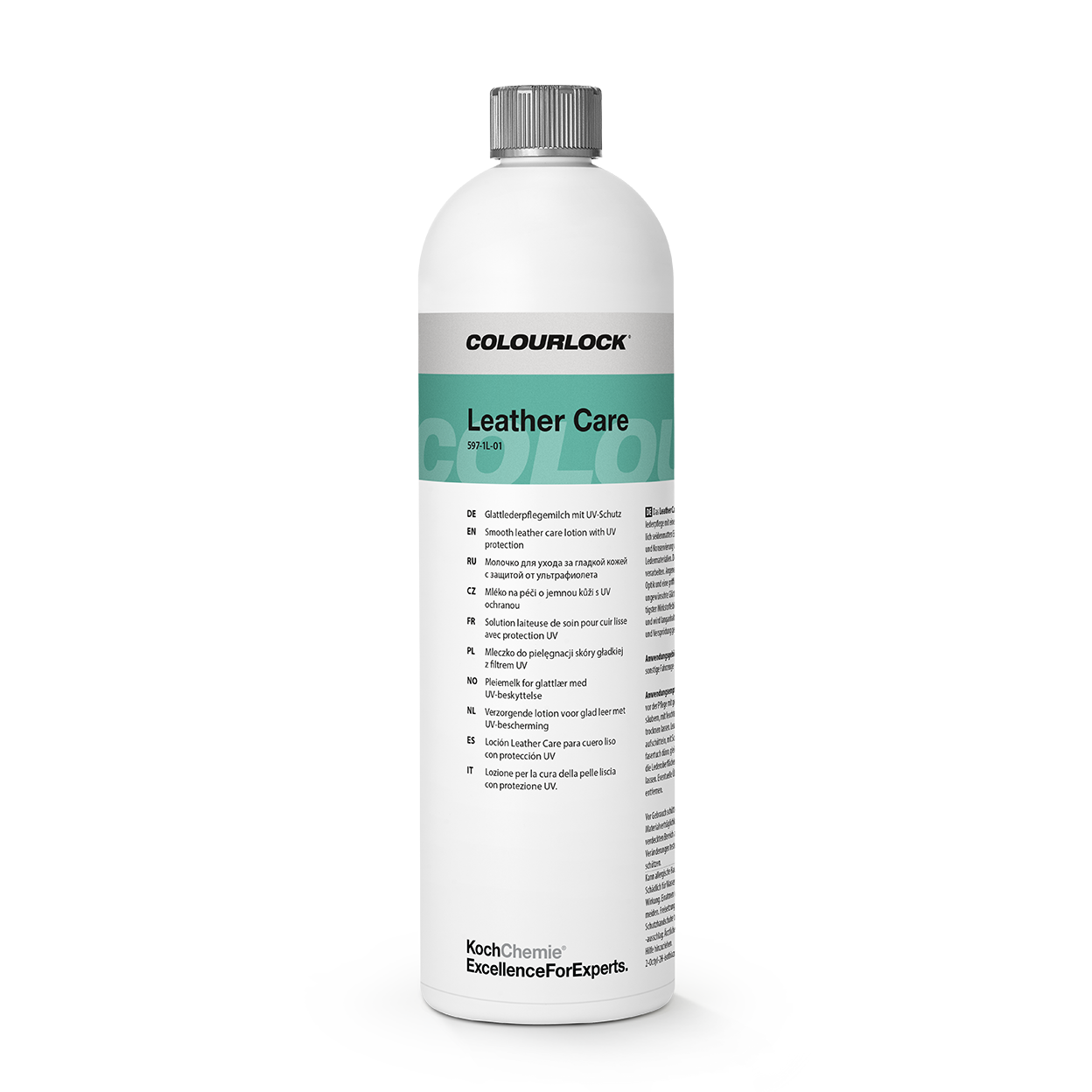 COLOURLOCK Leather Care ist eine hochwertige Pflegemilch für pigmentiertes Glattleder, die Reinigung und Schutz sinnvoll ergänzt. Sie versorgt das Leder mit pflegenden Komponenten, erhält die natürliche Geschmeidigkeit und schützt die Oberfläche vor dem Austrocknen. Der integrierte UV-Schutz verlangsamt das Ausbleichen durch Sonneneinstrahlung deutlich und trägt dazu bei, dass Farbe, Struktur und Optik langfristig erhalten bleiben – ideal für Autositze, Möbel, Taschen und hochwertige Lederaccessoires.