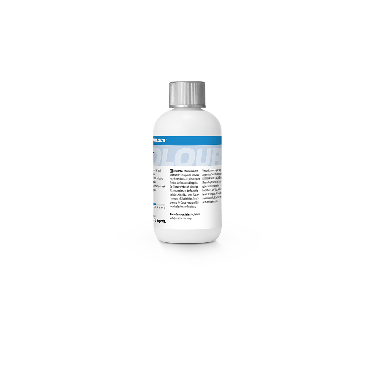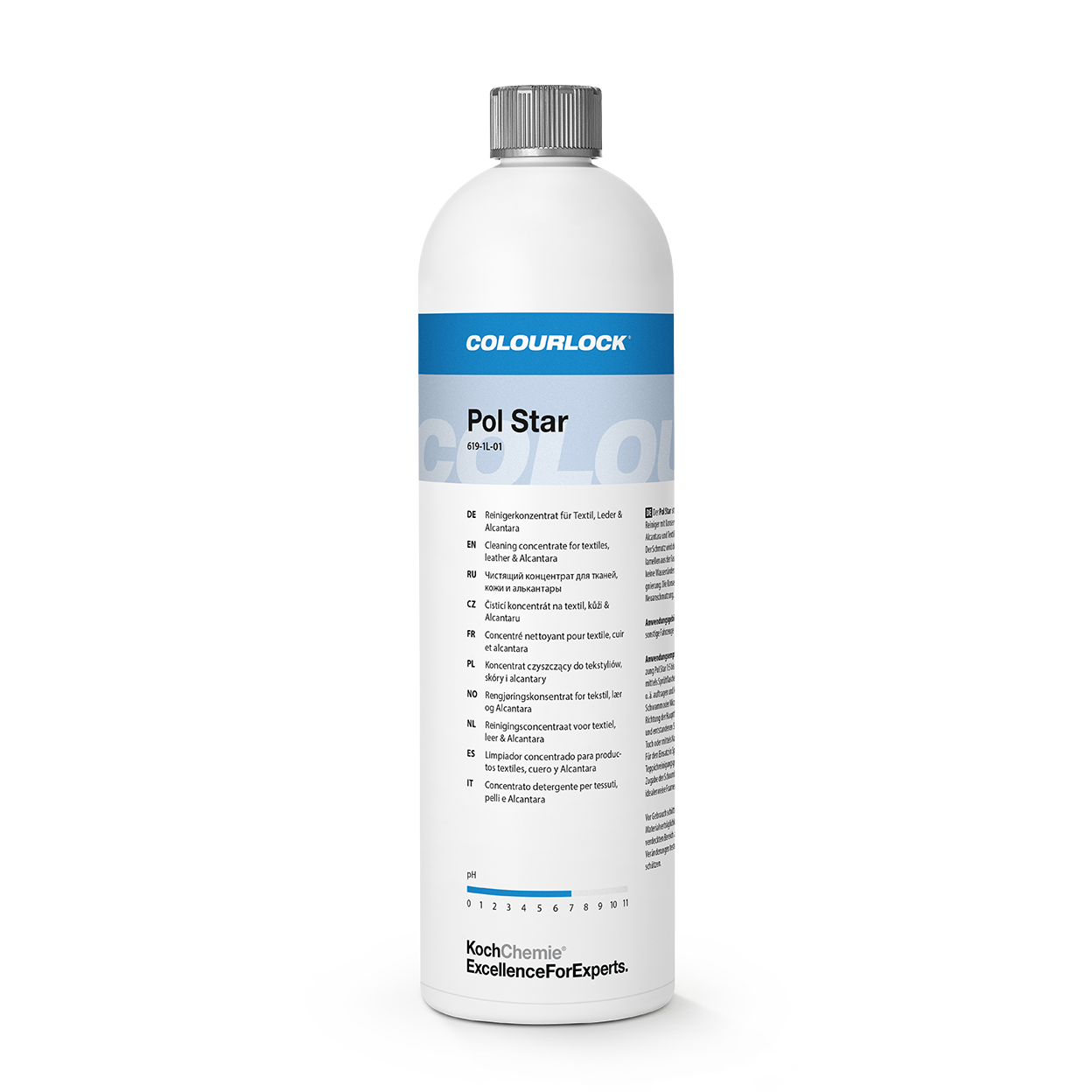 COLOURLOCK Pol Star ist der universelle, materialschonende Reiniger für textile Oberflächen, Alcantara und viele Lederarten. Entwickelt für Interieur-Detailing, Möbelpflege und professionelle Reinigungssituationen, löst Pol Star selbst festsitzende Verschmutzungen, ohne die Fasern aufzurauen oder das Material auszutrocknen. Ob Sitze, Teppiche, Einstiegsbereiche, Türtafeln, Lenkrad-Alcantara oder Textiloberflächen in Wohn- und Freizeitbereichen – Pol Star reinigt tiefenwirksam und sicher, ohne klebrige Rückstände oder harte Kanten zu hinterlassen.