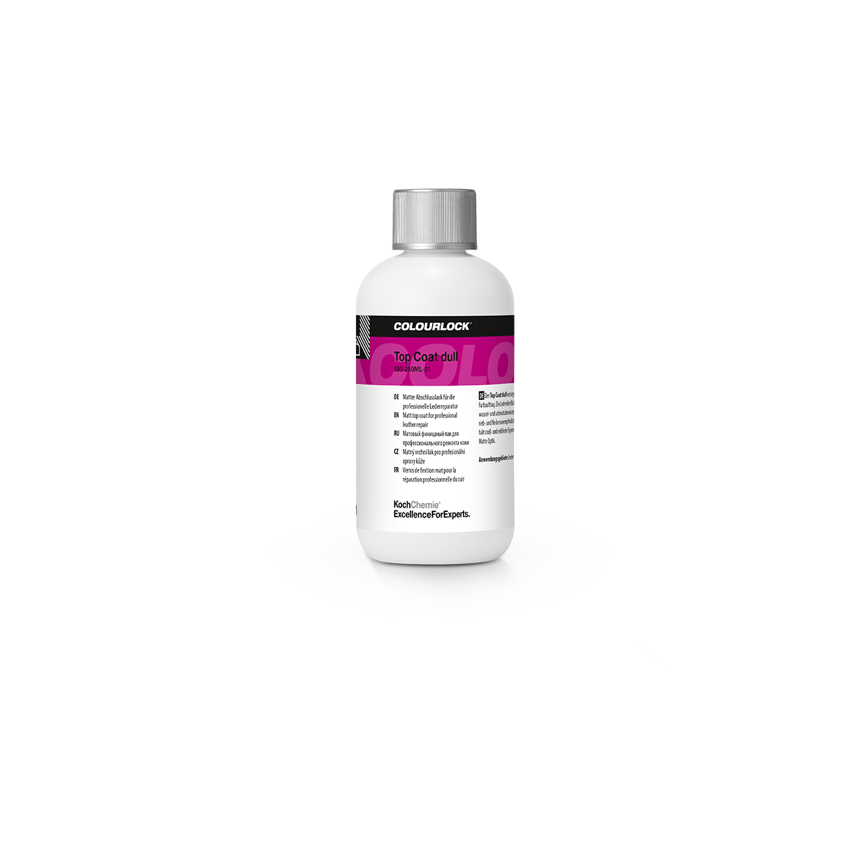 COLOURLOCK Top Coat (Dull) ist ein matter Abschlusslack zur professionellen Versiegelung von Lederoberflächen nach Reparatur- oder Färbearbeiten. Er schützt die Farbschicht zuverlässig vor Abrieb, Reibung, Hautfetten und alltäglicher Beanspruchung und stellt gleichzeitig eine gleichmäßige, natürliche Mattoptik her. Besonders bei modernen Automotive-Ledern, Möbeln und Interieurteilen ist ein matter Look entscheidend, um das originale Erscheinungsbild zu erhalten.