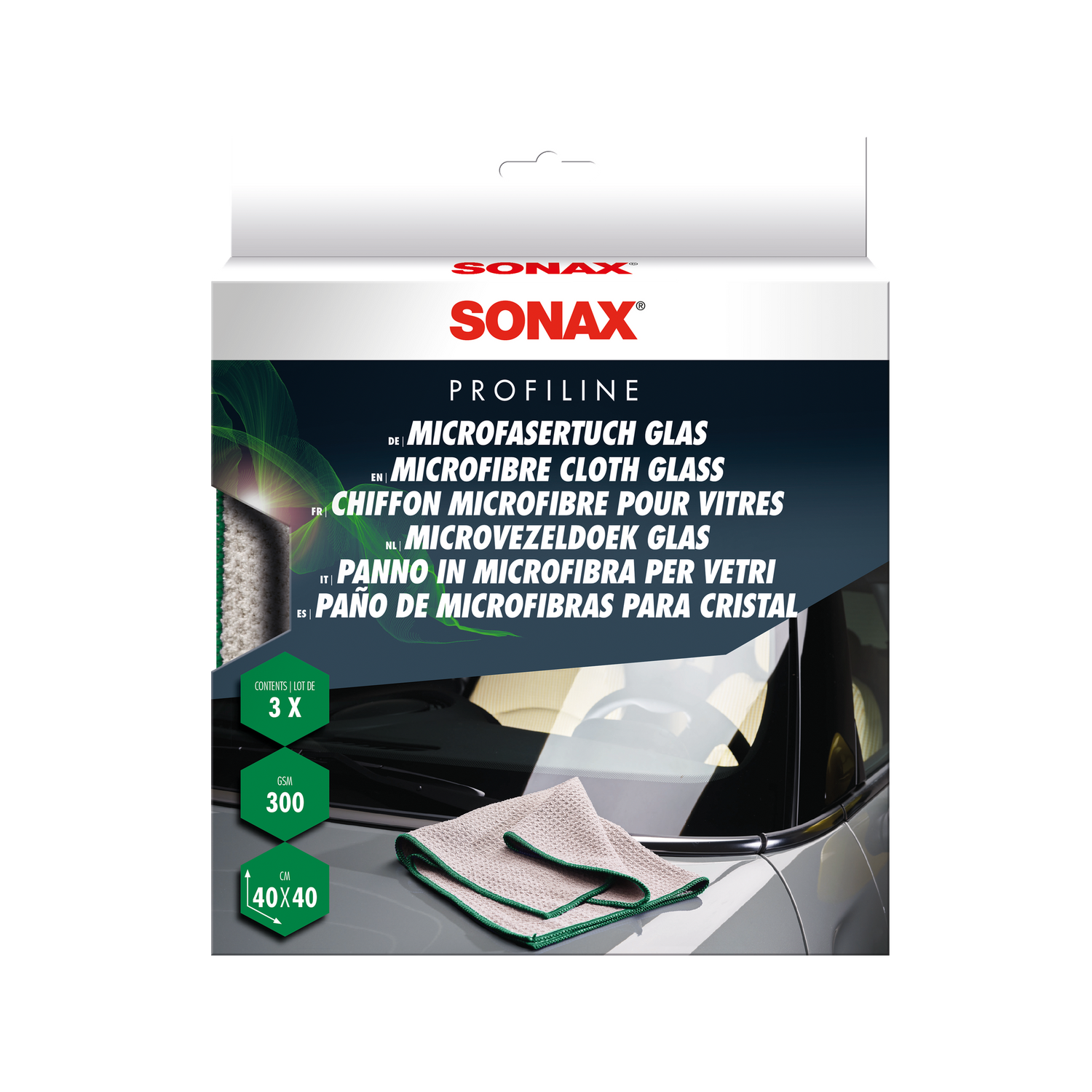 Was macht das SONAX PROFILINE MicrofaserTuch Glas besonders? Das sehr saugfähige und fusselfreie Profi-Mikrofasertuch ist speziell für die Reinigung von Fahrzeugglas entwickelt — für streifenfreie Ergebnisse auf Windschutzscheibe, Seitenscheiben und Rückscheibe ohne Nachpolitur.